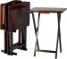 - Juego de cuatro mesas supletorias plegables con soporte de almacenamiento a juego.