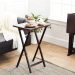 - Se trata de un juego de cuatro mesas auxiliares plegables con soporte de almacenamiento a juego.