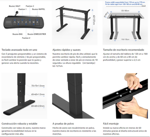 • 【MECANISMO ELEVADOR DE 2 MOTOR 】Ofrece un ajuste de altura más suave, una estabilización mejor y poco ruido cuando opera. El nivel de ruido en funcionamiento se va debajo de 50 dBs.