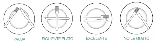 - La forma de colocar los cubiertos en el plato es como una señal que se hace al camarero, de esta manera sabe si has terminado o no y nos puede retirar el plato.